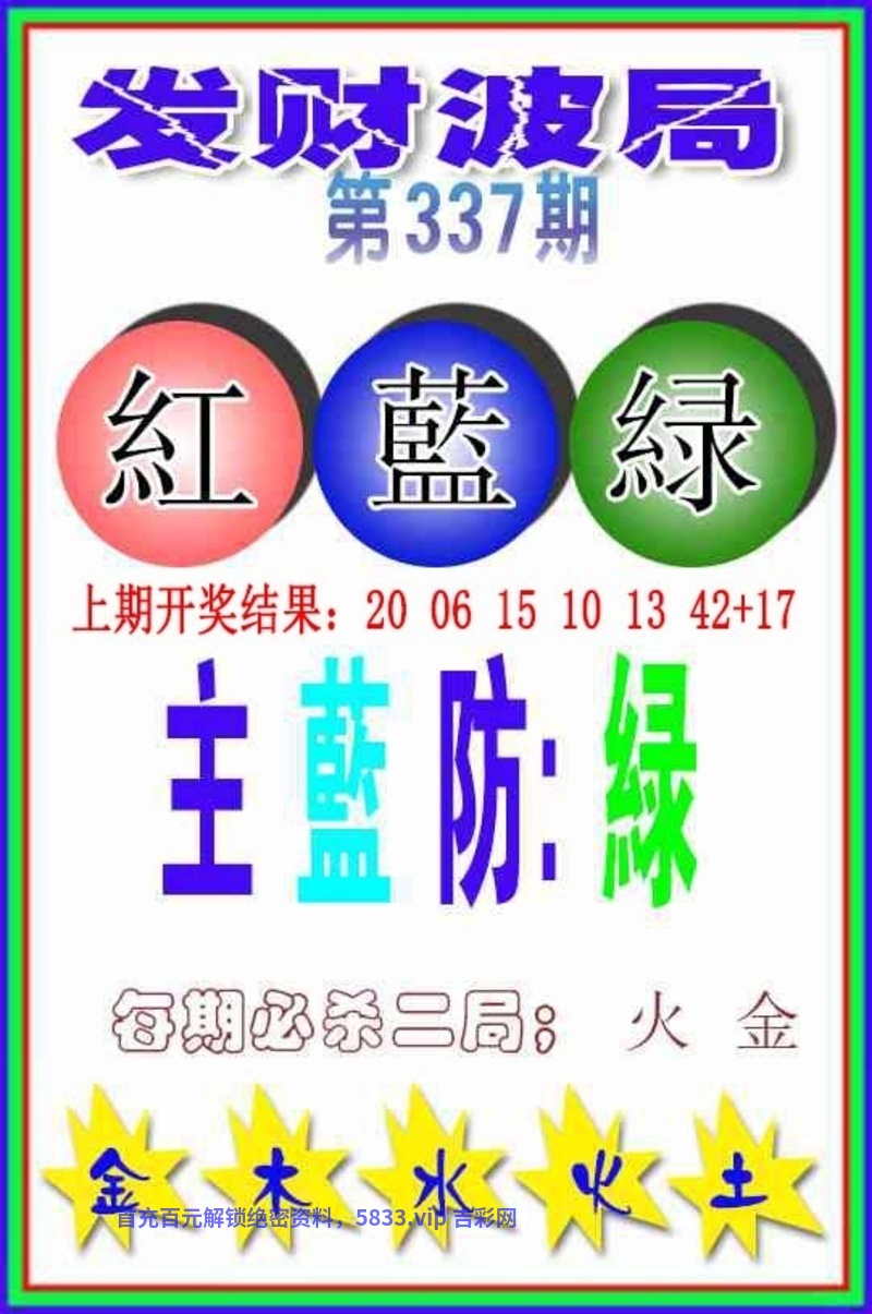 | 335期『发财波局』开狗44 精解特肖:鼠龙鸡兔狗马 必中二波:主红防绿 绝杀二局:木金 |